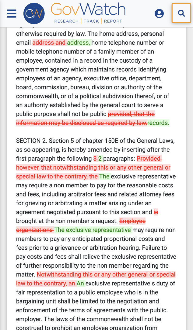 Highlighted text comparisons for all legislation allows you to view every change to every bill in seconds.